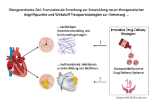 Das zentrale Forschungsinteresse liegt darin, die zugrundeliegenden molekularen und immunologischen Mechanismen in der Entwicklung von Aortenerkrankungen und kardialem Remodeling zu entschlüsseln – mit besonderem Augenmerk auf das Zusammenspiel von Alterungsprozessen, der Immunantwort und dem Mikrobiom. Ziel ist es, durch innovative Drug-Delivery-Systeme und verschiedene in vitro und in vivo Modelle neue Biomarker und therapeutische Strategien zur Erforschung der infektiösen Endokarditis zu identifizieren. Diese sollen eine frühzeitige Diagnose, wirksame Prävention und gezielte Behandlung ermöglichen und damit die Überlebenschancen von Patientinnen und Patienten nachhaltig verbessern.